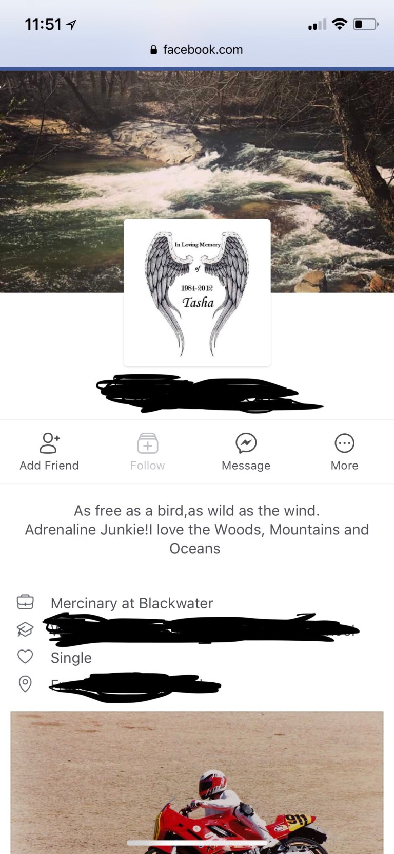 A fb “friend” of my ex-husband sent me a message today. He/she sent me a screenshot of my ex’s profile page and it included a picture I had made for my daughter’s foundation page.